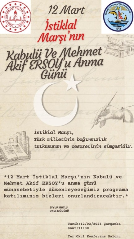 12 Mart İstiklal Marşı'nın Kabulünün 104. yılı ve Mehmet Akif Ersoy'u Anma Programı öğretmenlerimizin ve öğrencilerimizin hazırlamış oldukları etkinliklerle gerçekleştirildi.